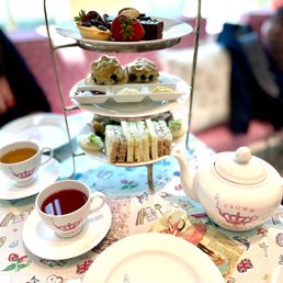 Had a reservation for 2 and they seated us right away. We both had the pot of tea with some treat; my friend did the scones and I went with the crumpets, both were LOVELY. We had not seen each other in a little bit so we chatted for a couple hours and the staff was very nice about letting us stay and asking if they could top off our water. Very pretty and detailed decorations. All the plates, cups, and teapots and dishes were customized to their theme. The walls and tables were decorated too. I'd definitely go again.