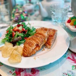 Need a place to celebrate your bday or girls day out??! Go shopping at Japan town and then have Afternoon Tea at crownandcrumpet -Tea that's fit for a king or queen! The teas are absolutely delicious, with tasty and generous portioned sandwiches and desserts. We came here for my birthday, it was so much fun and the food was delicious! Can't wait to go back! Things we ordered: - Paris (tea): Their most popular blend, vanilla & caramel are the high notes of this beloved French tea. - Pretty in Pink (tea): Strawberry and vanilla are the high notes with hibiscus, elderberries, blueberries, and botanicals create a fruity heaven. - Afternoon Tea for One (2): A large pot from our selection of loose-leaf tea, three freshly made finger sandwiches, two warm savories, one scone and crumpet, with clotted cream, house-made lemon curd and jam, and four sweets & treats. - Coronation Chicken: Lightly curried chicken with apricots, almonds, green onions & mango chutney on crumpet. - Chicken Pot Pie: Roasted breast of chicken with petit peas, carrots, onions, and celery, topped with a puff pastry cap.